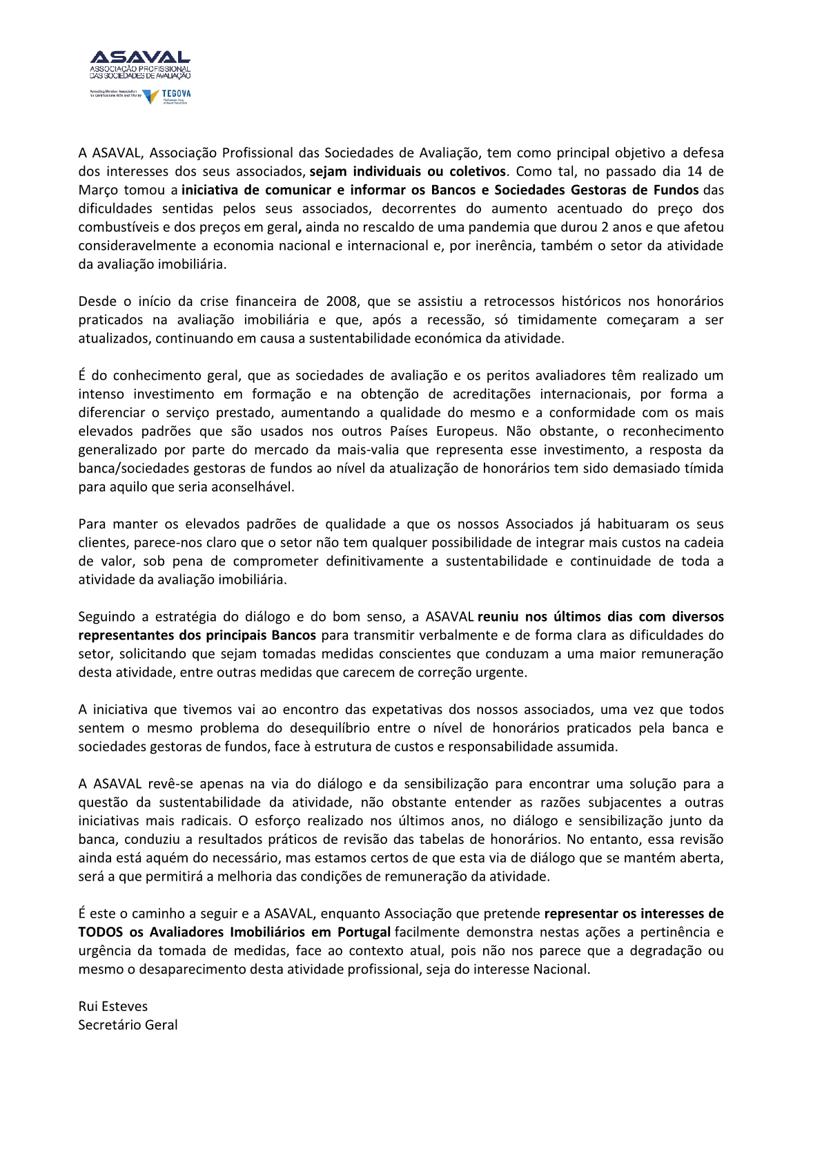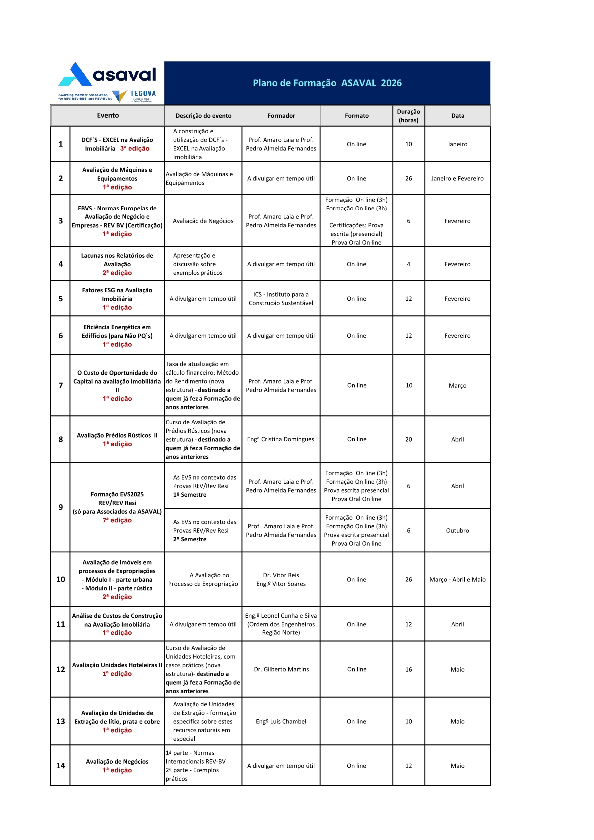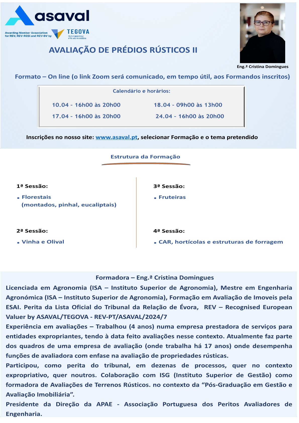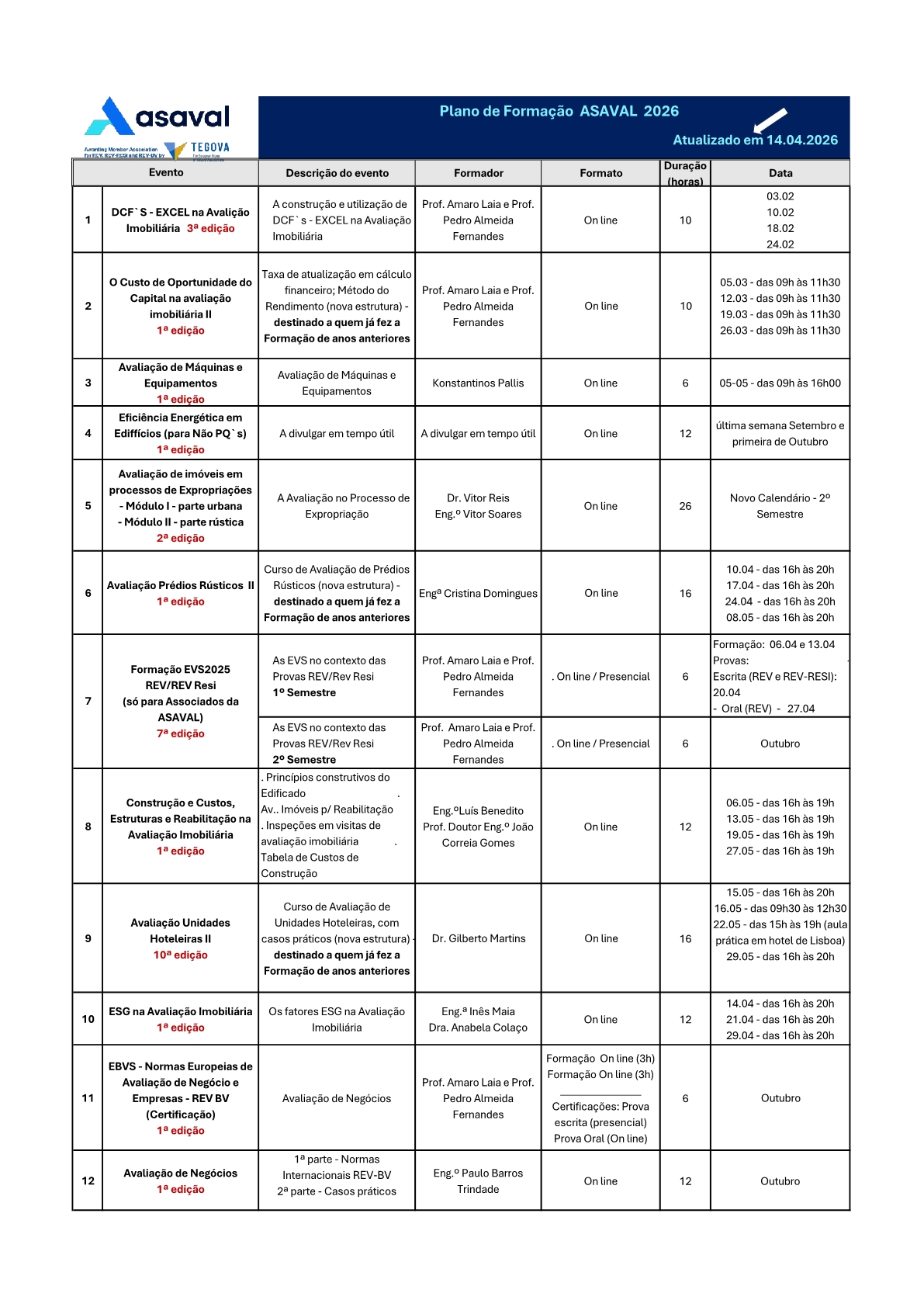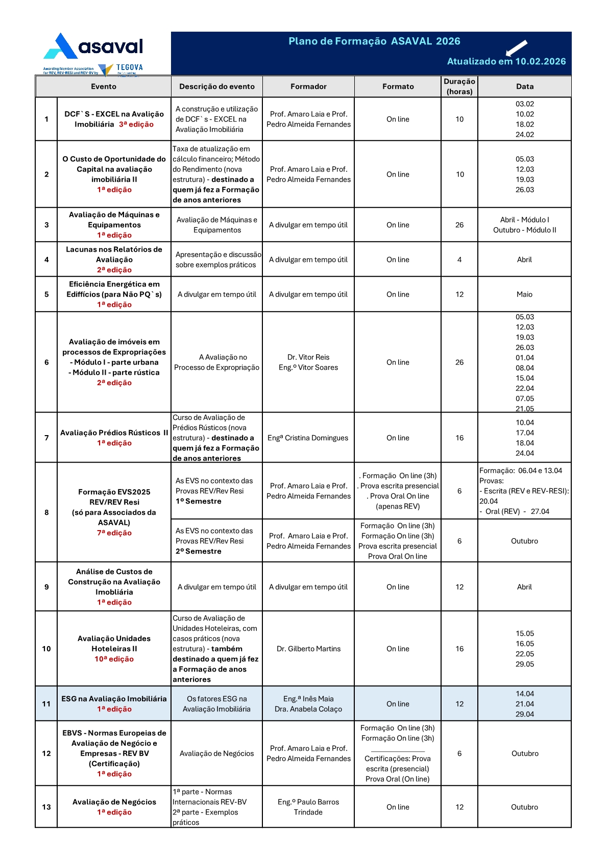 EVS 2020: Continua disponível e em exclusivo para os Associados da ASAVAL, ao preço simbólico de 25€, a versão Portuguesa das EVS 2020. Para os não Associados da ASAVAL e caso pretenda adquirir esta publicação, pelo preço de 125€, ou tornar-se nosso Associado, por favor enviar um email para: