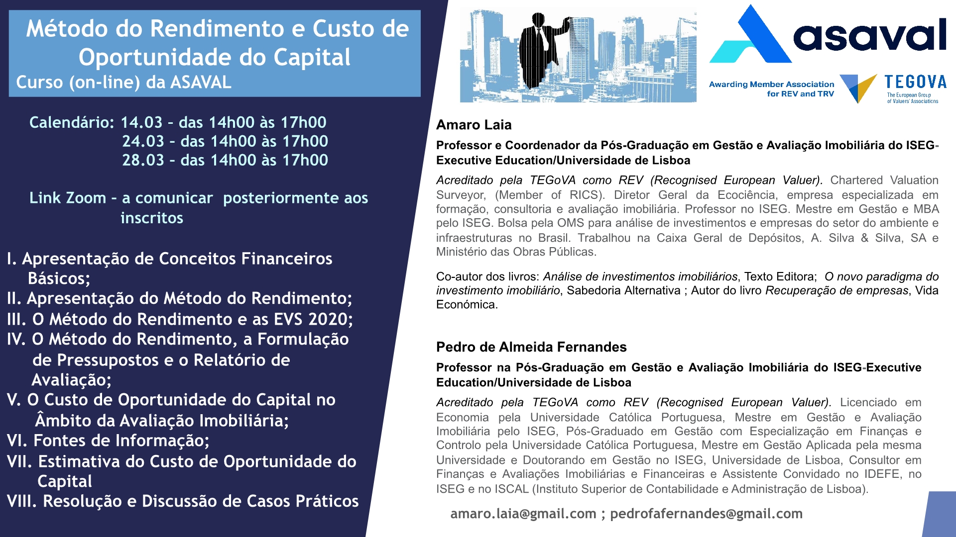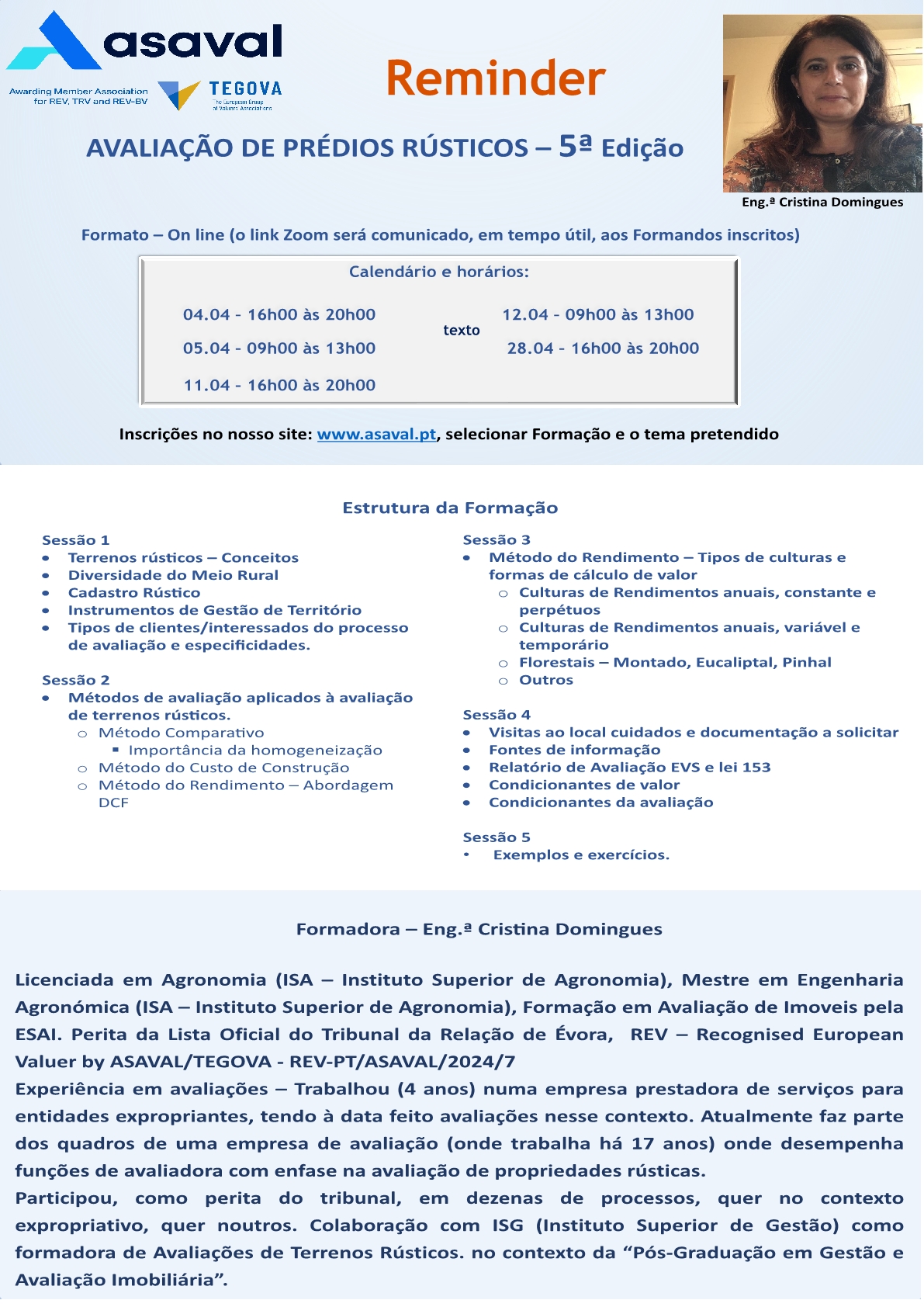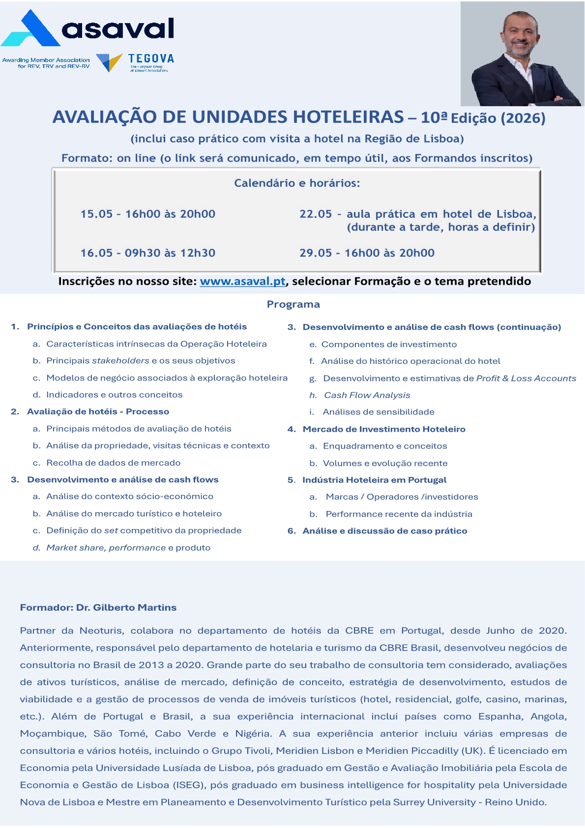 A ASAVAL valoriza a formação contínua dos peritos avaliadores, promovendo cursos periódicos sobre matérias específicas da avaliação e dispõe de protocolos internacionais, os quais permitem o acesso a um conjunto de plataformas de formação nos mais variados temas da atividade.