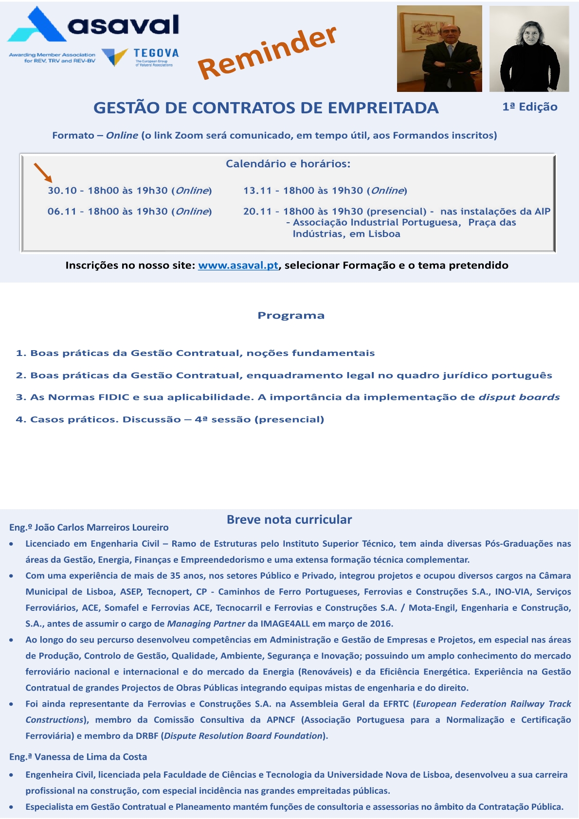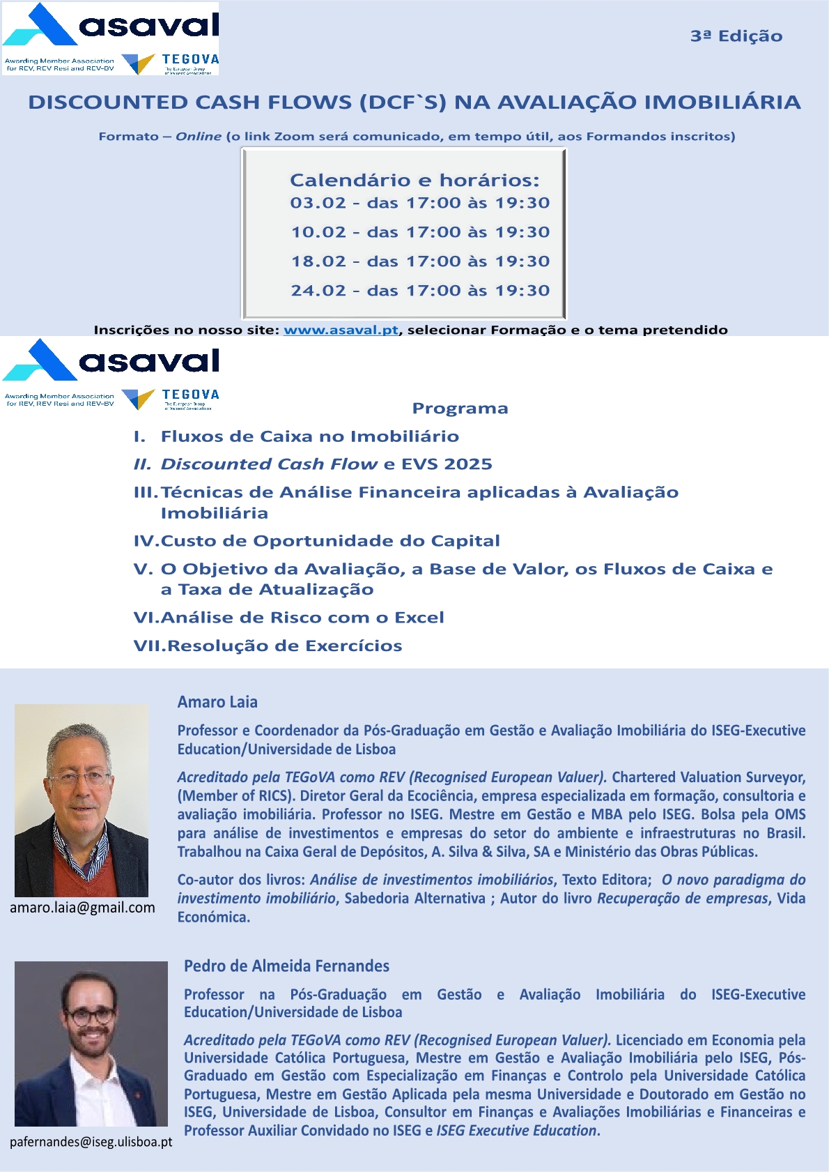 EVS 2020: Continua disponível e em exclusivo para os Associados da ASAVAL, ao preço simbólico de 25€, a versão Portuguesa das EVS 2020. Para os não Associados da ASAVAL e caso pretenda adquirir esta publicação, pelo preço de 125€, ou tornar-se nosso Associado, por favor enviar um email para: